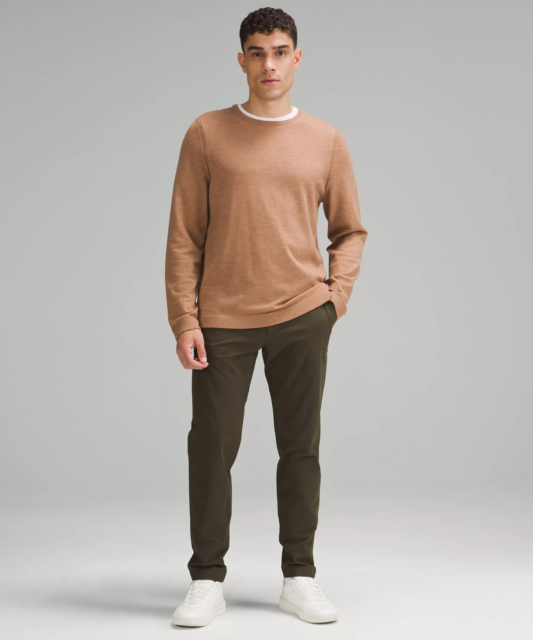 Our new slim fit is narrower than our classic—it skims the hips and thighs without being constrictive.