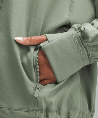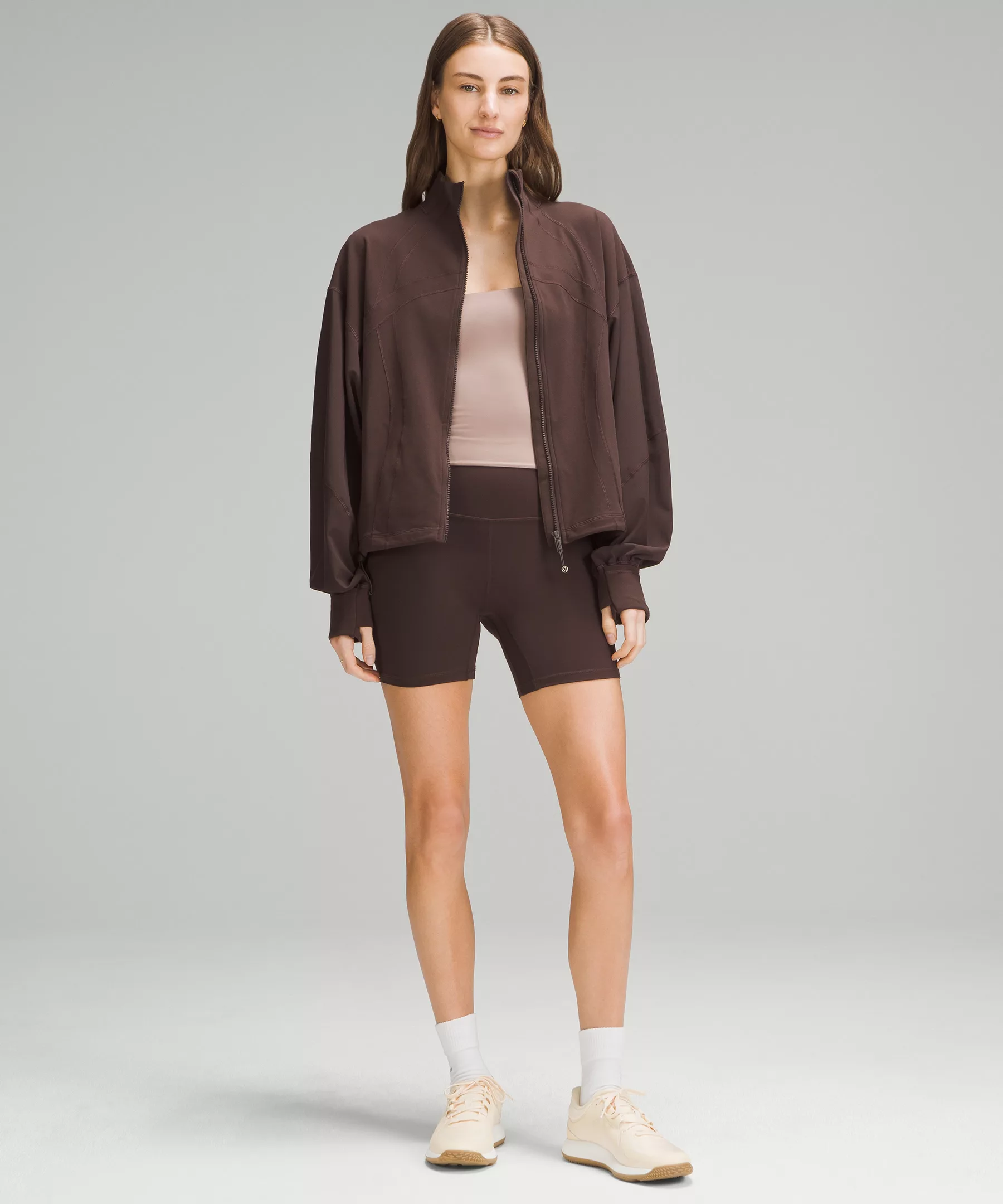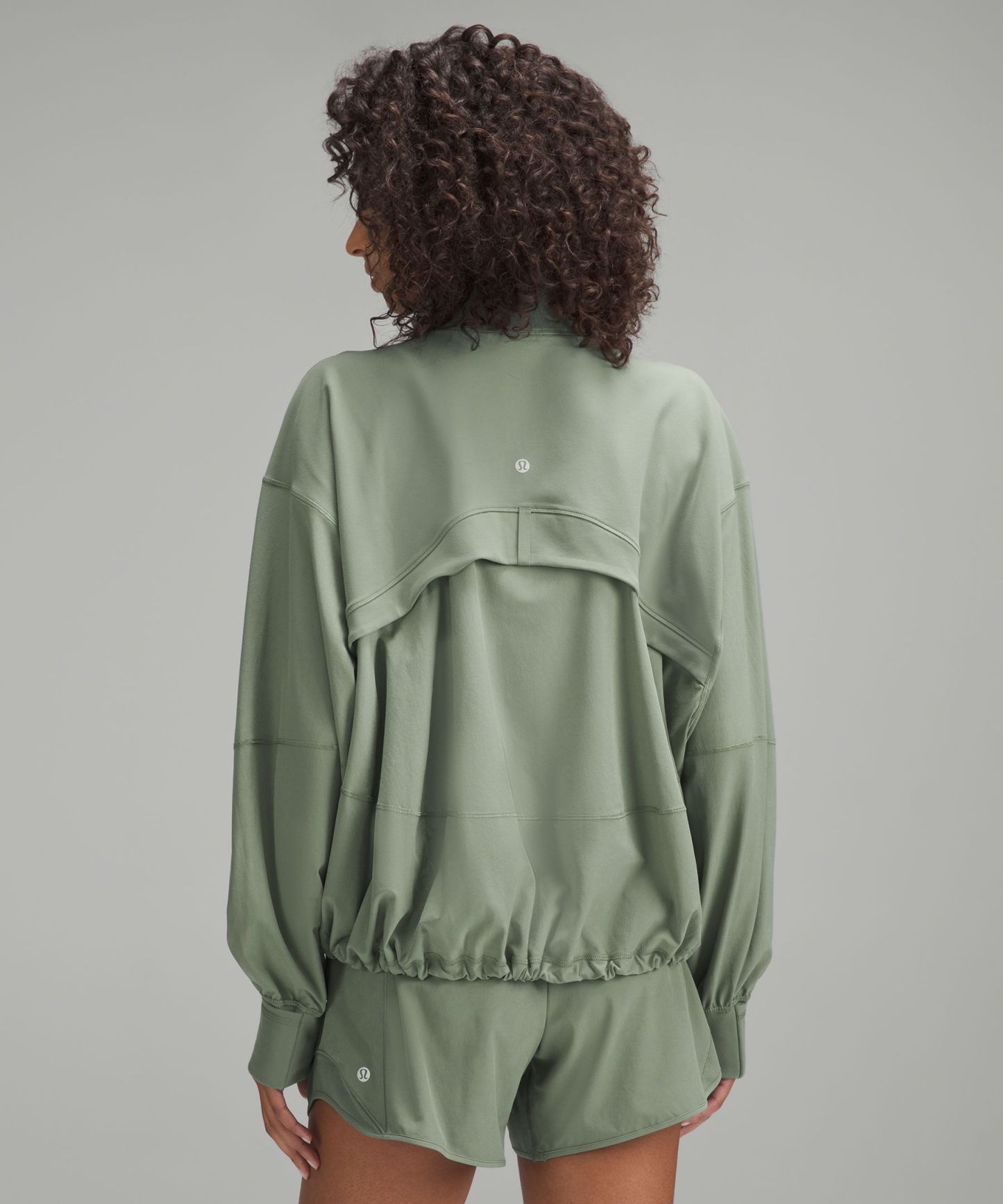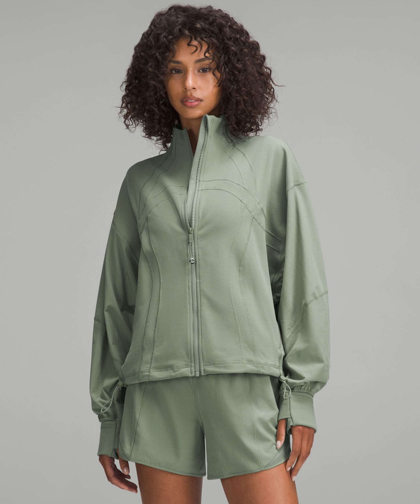 - Elastic zipper pull doubles as an emergency hair tie