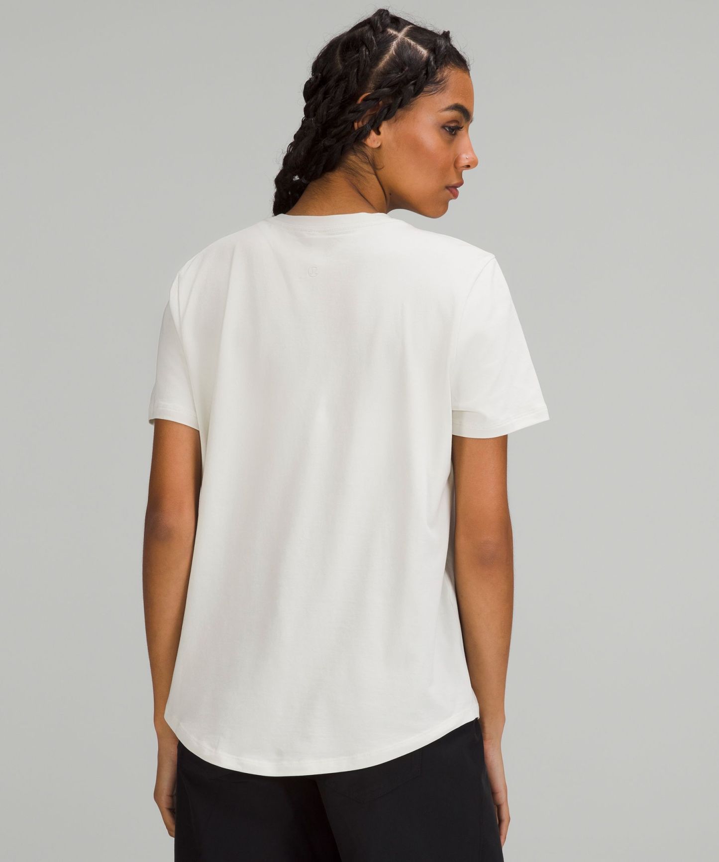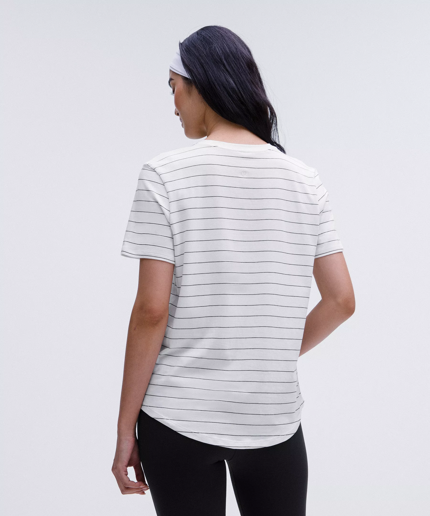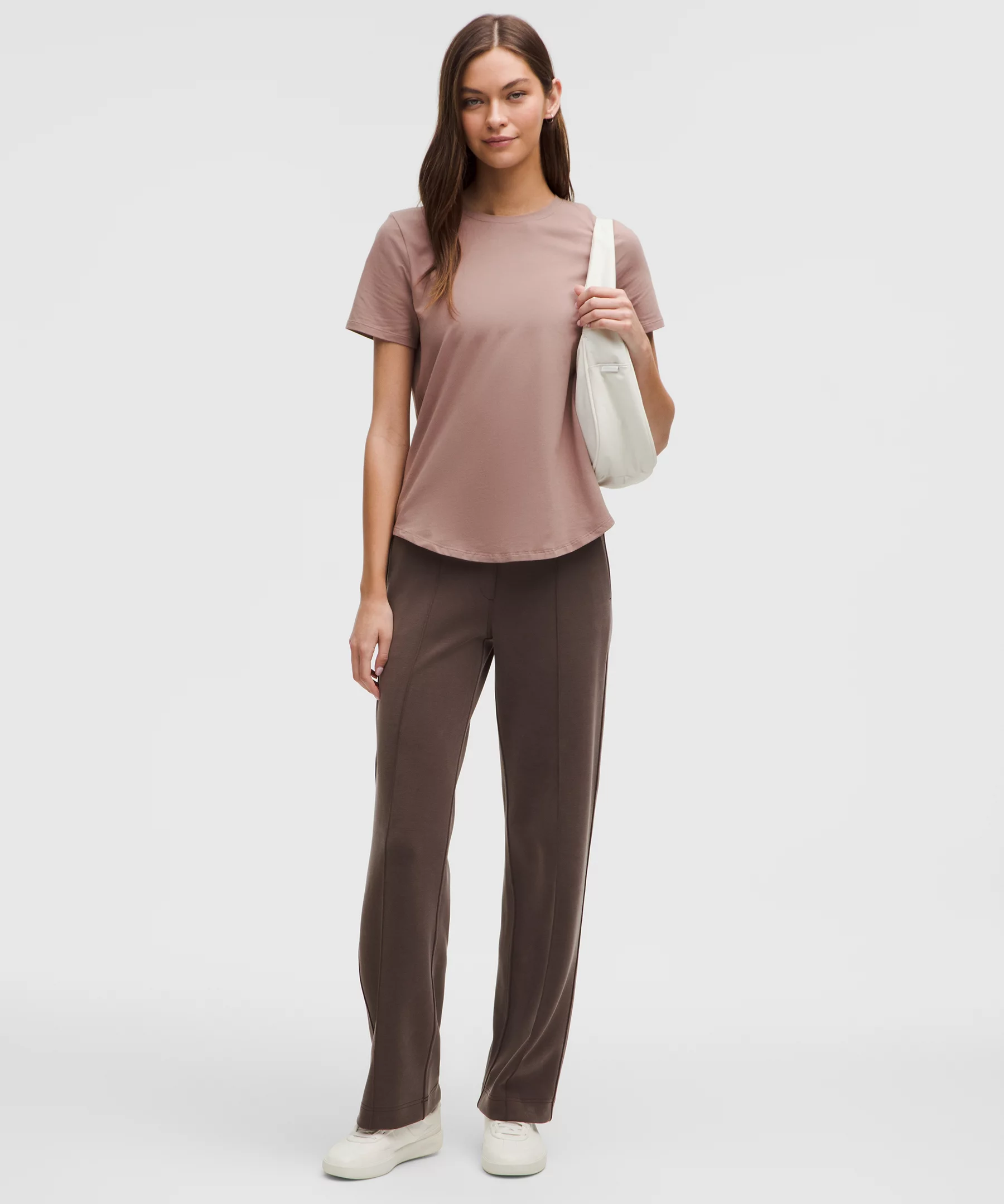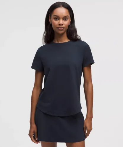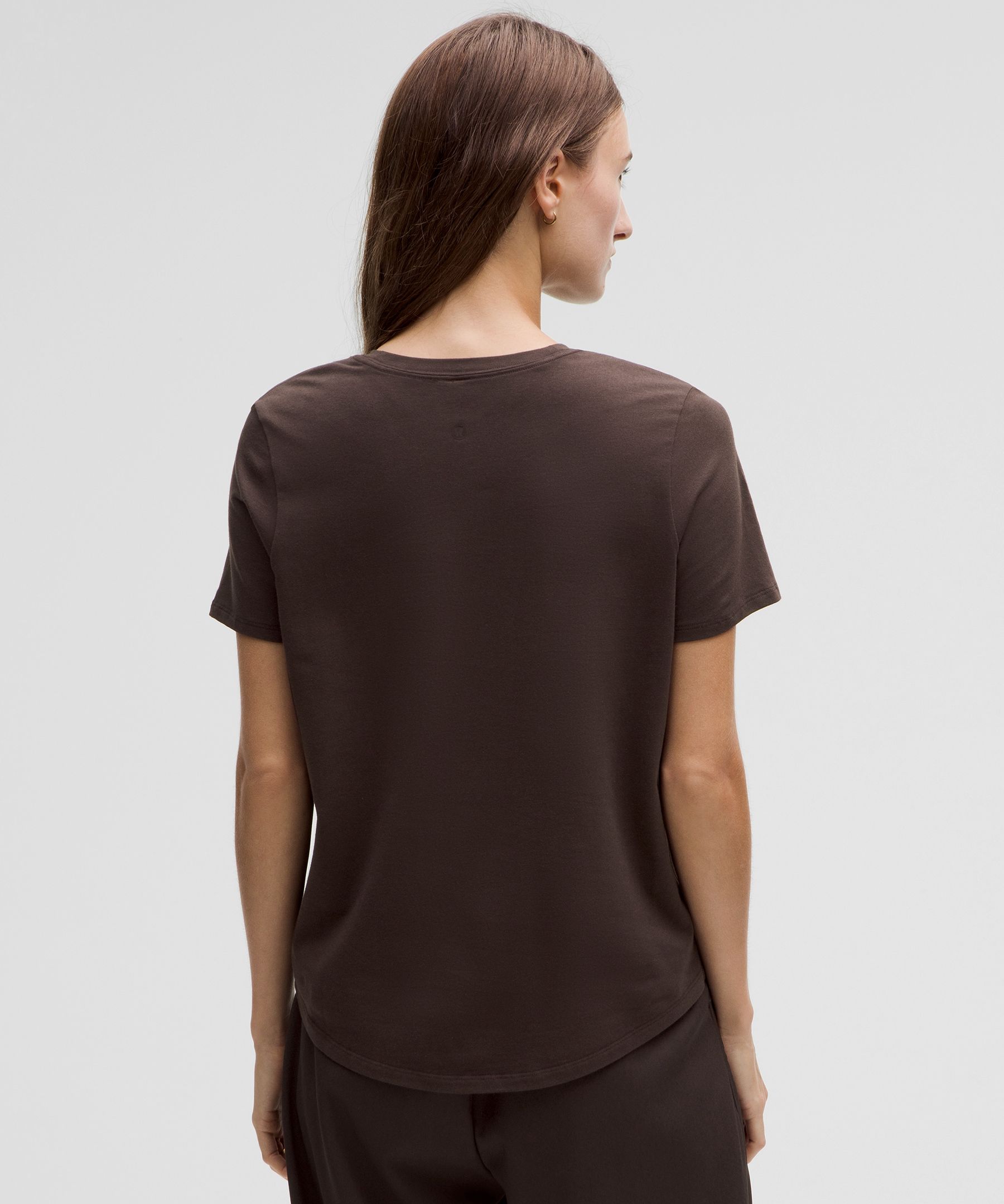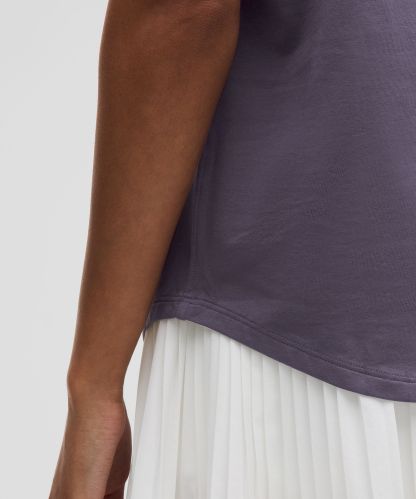 Curved hem hits below the waistband for moderate, everyday coverage