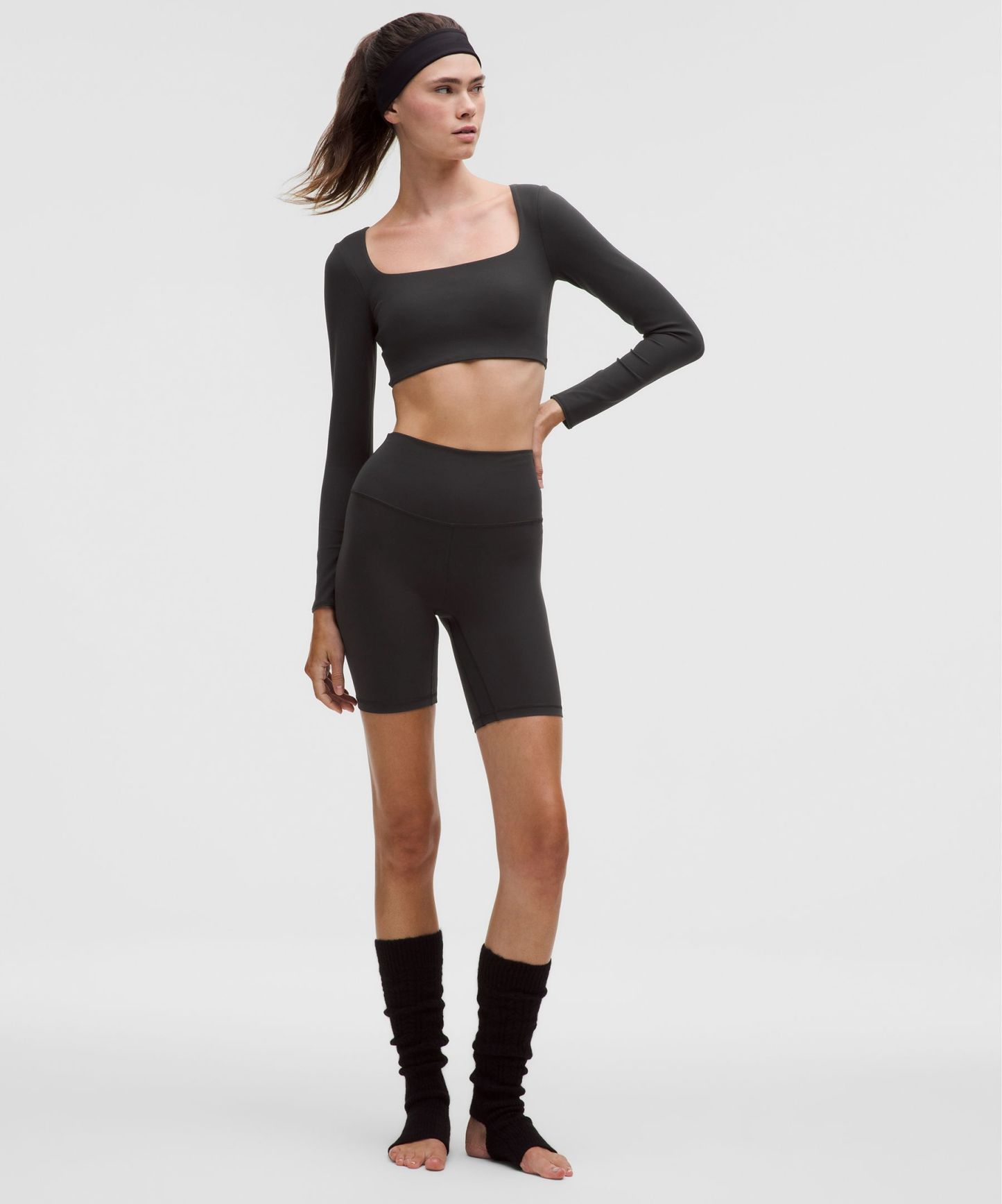 A high-rise waistband keeps you covered during forward folds and downward dogs.
