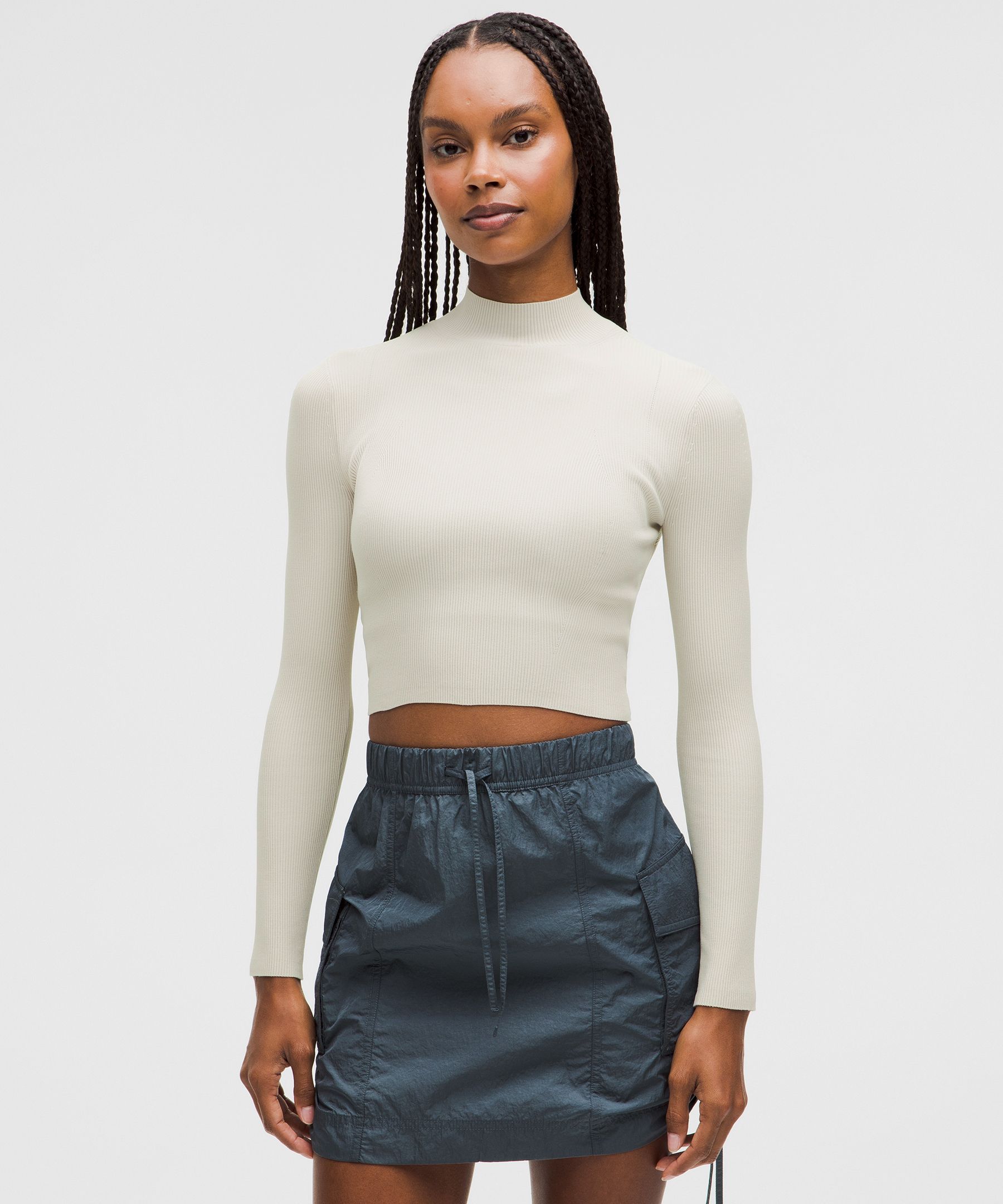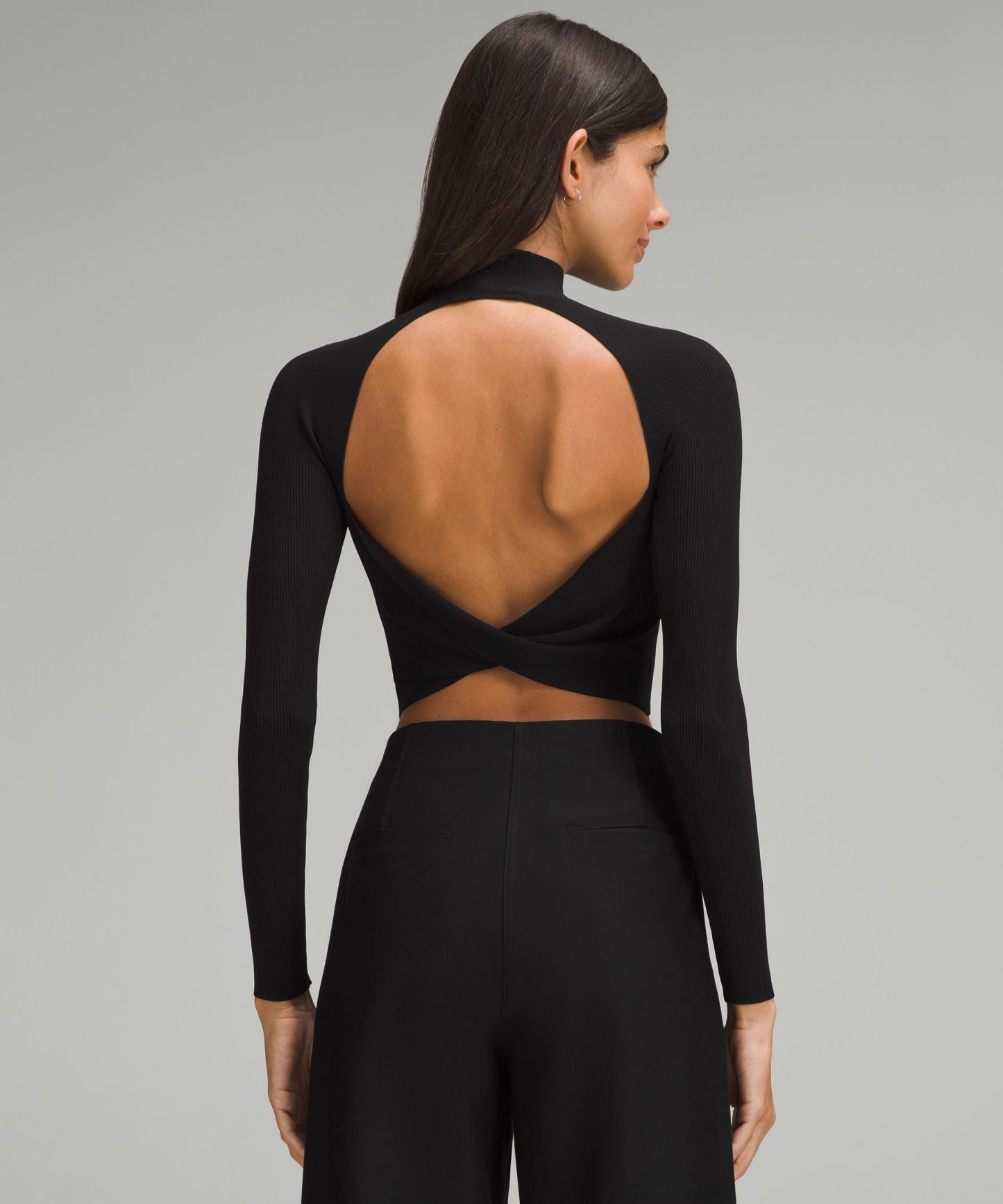 Ribbed-Knit Twist-Back Mockneck Sweater