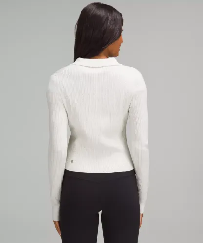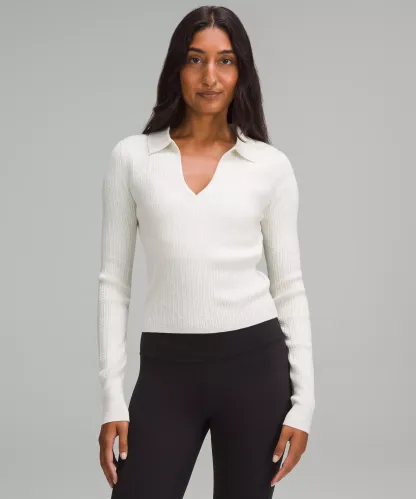 Ribbed Merino Wool-Blend Collared Sweater