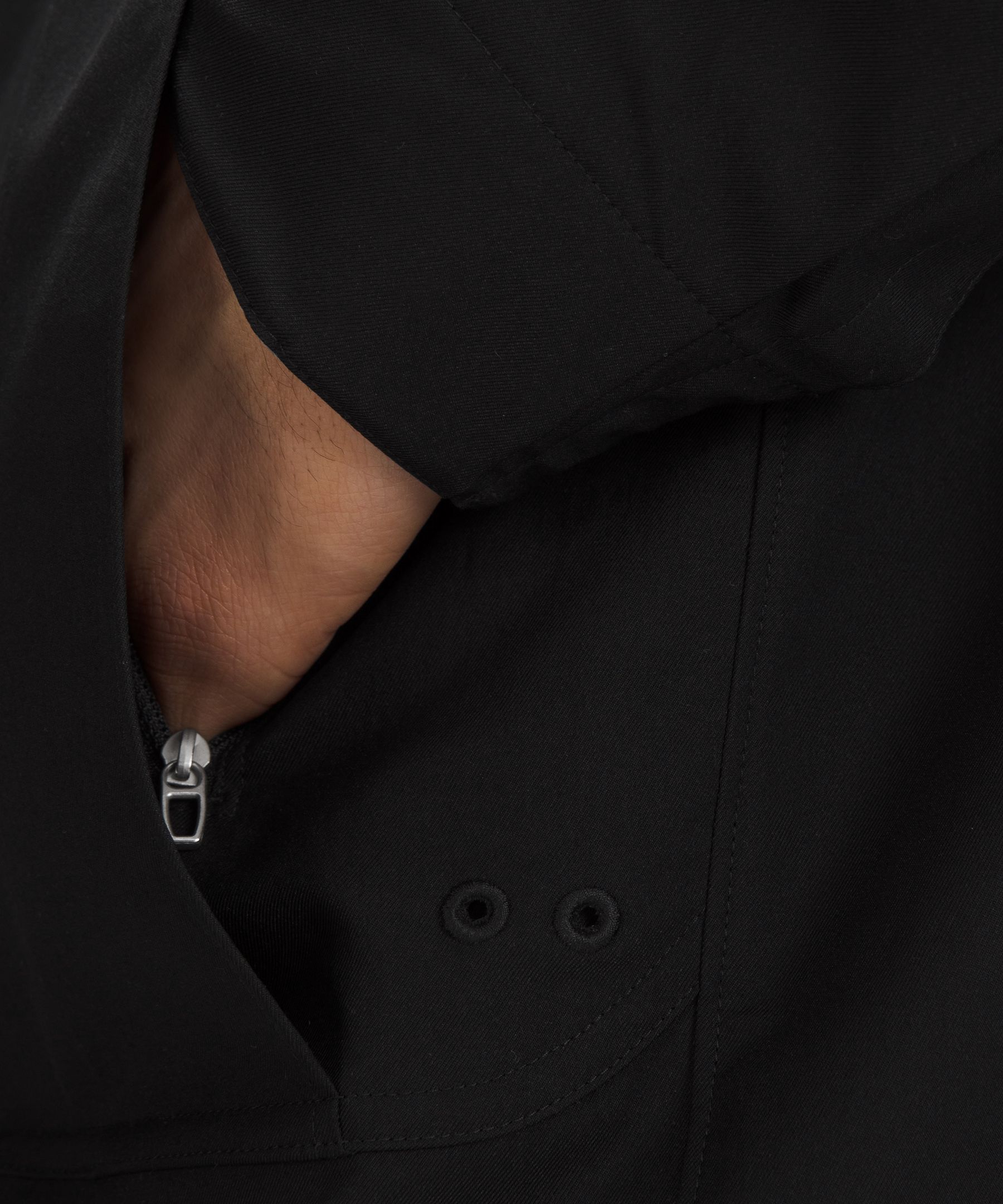Zippered hand pockets with hidden phone and coin sleeves