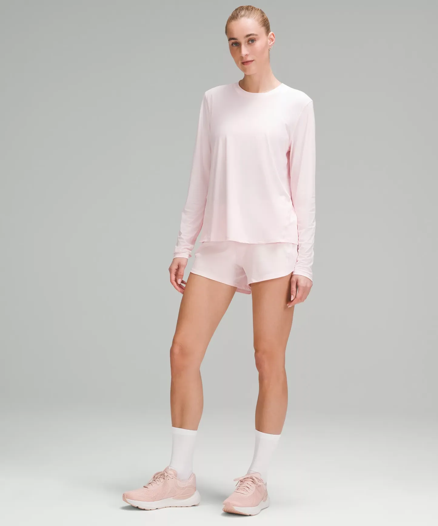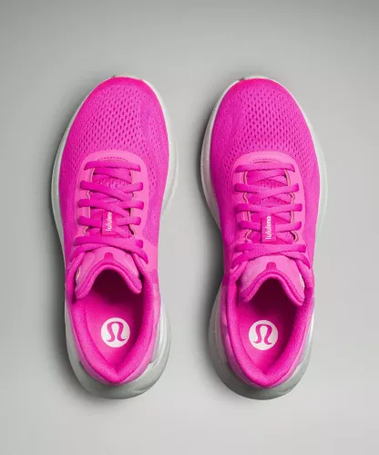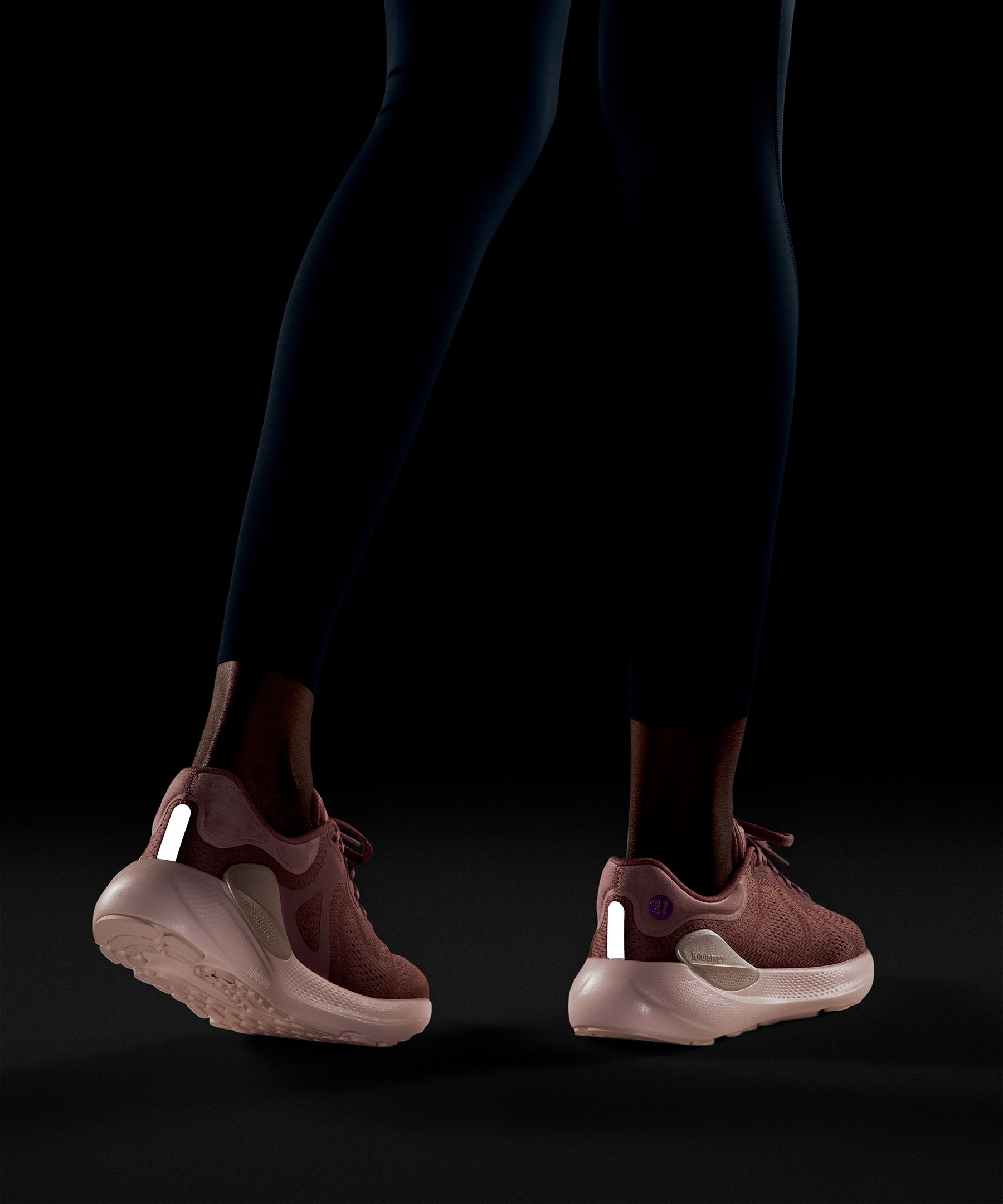 An extra flex groove on the outsole mirrors a woman's footstrike for a smooth ride