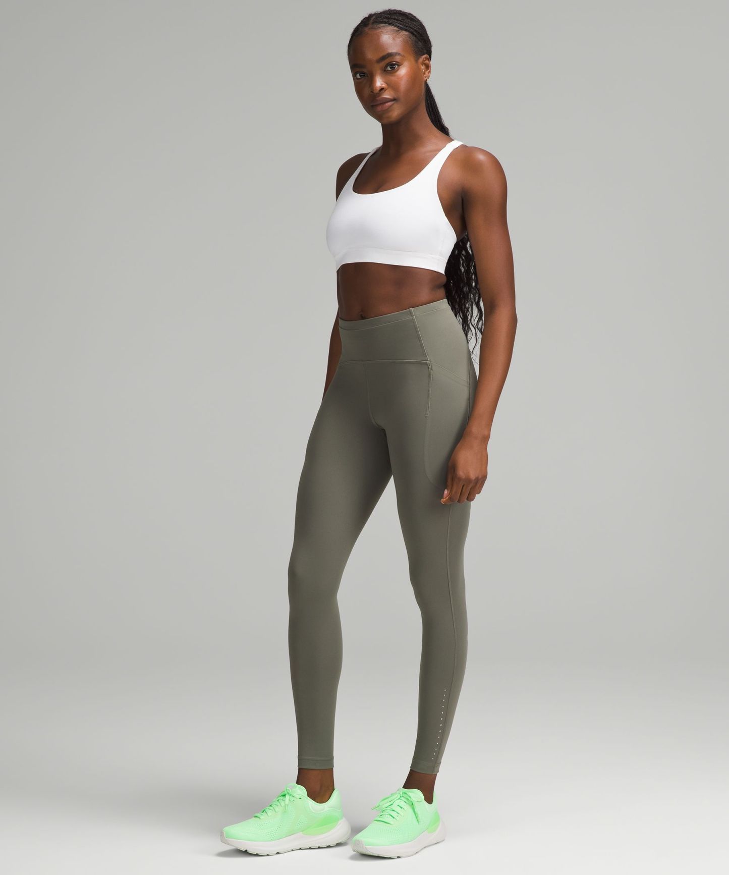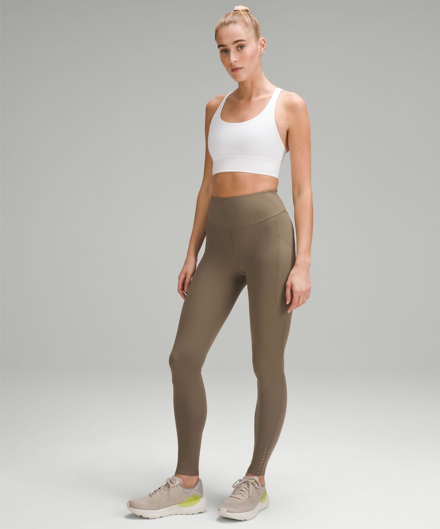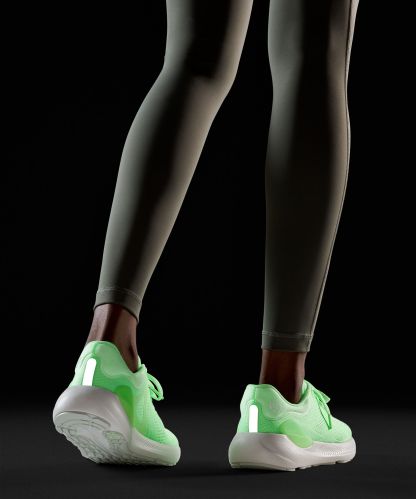 An extra flex groove on the outsole mirrors a woman's footstrike for a smooth ride