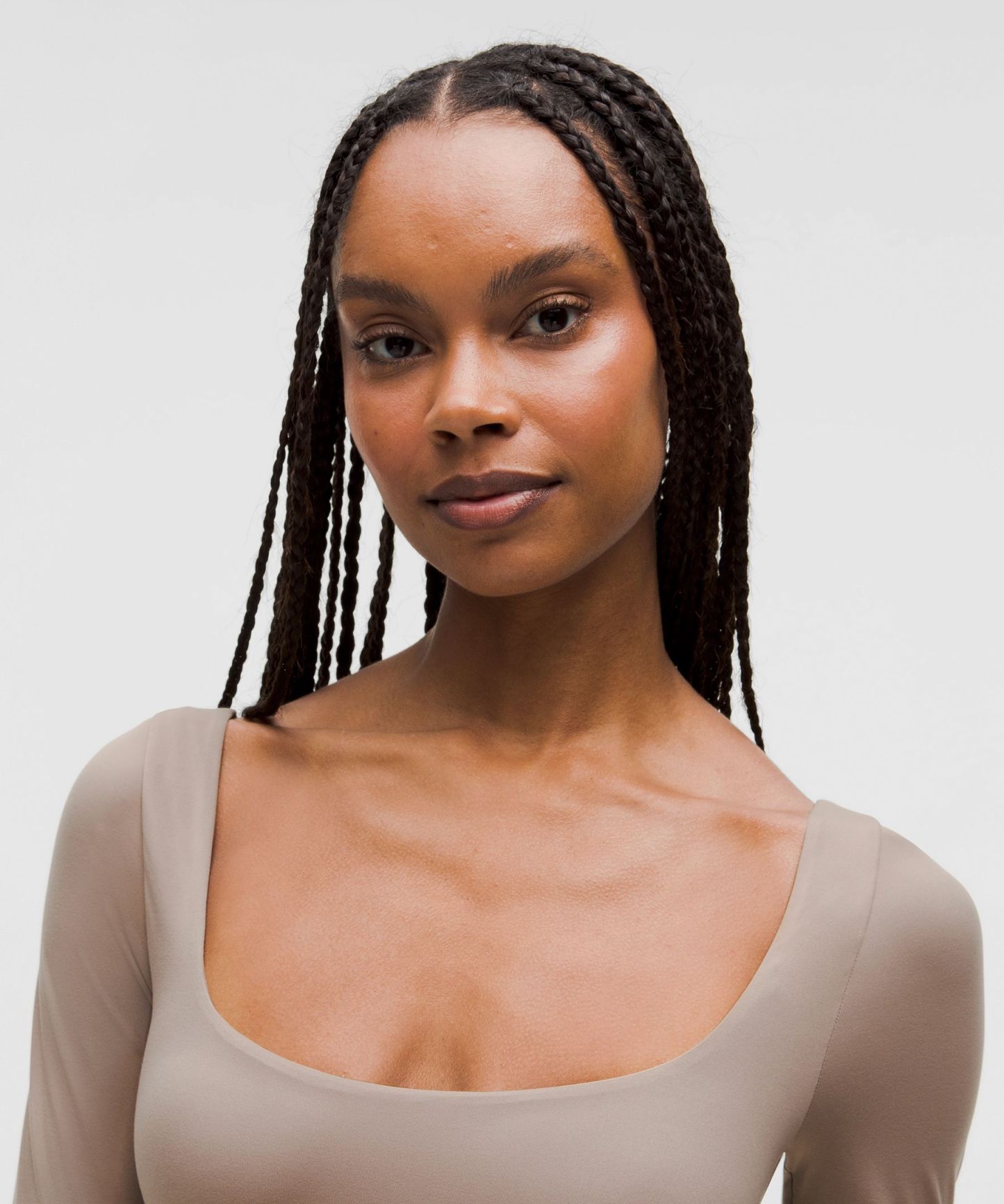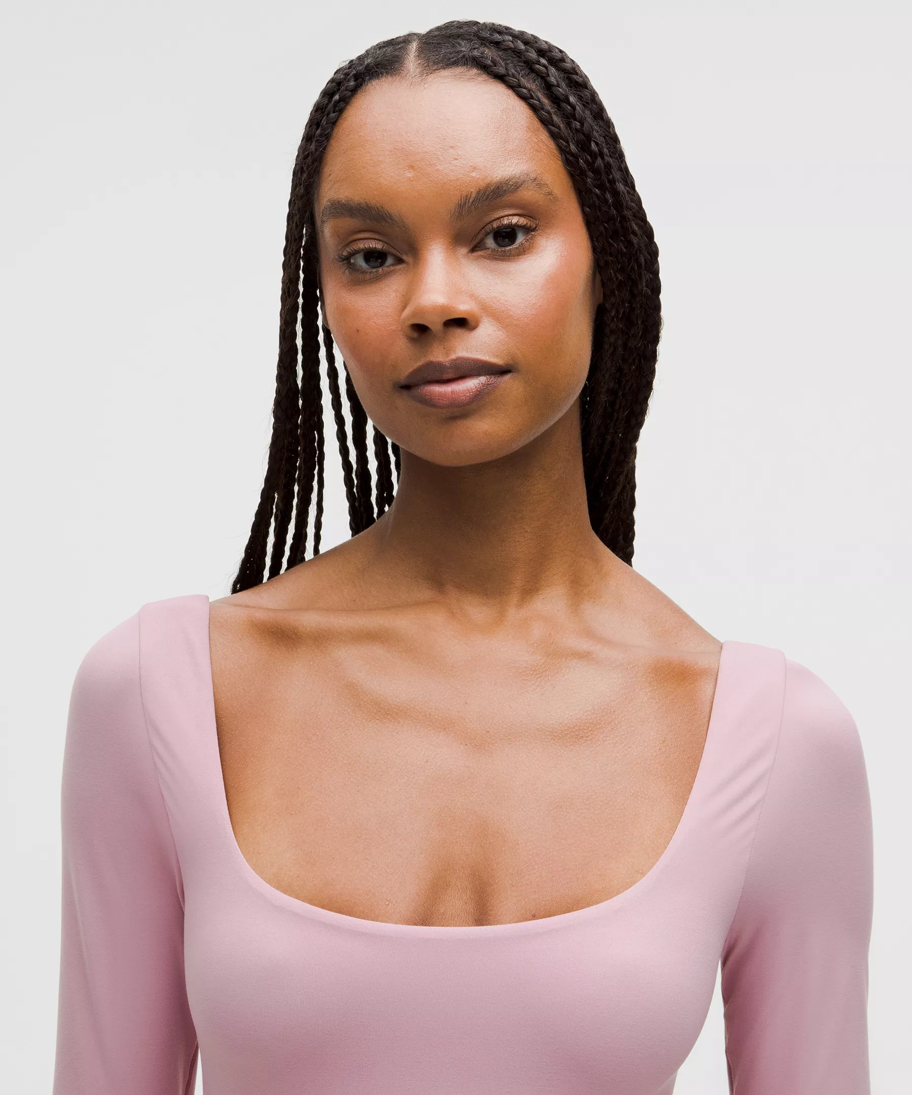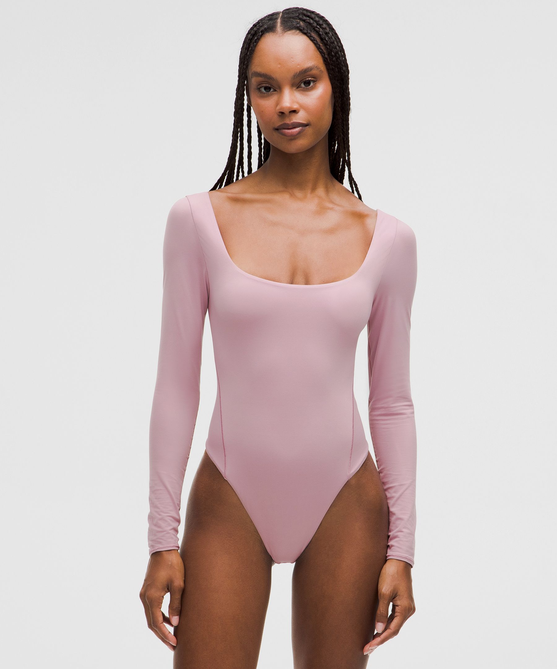 Fabric is double layered for coverage, support, and a seriously soft feel on both sides. The sleeves have a single layer of fabric