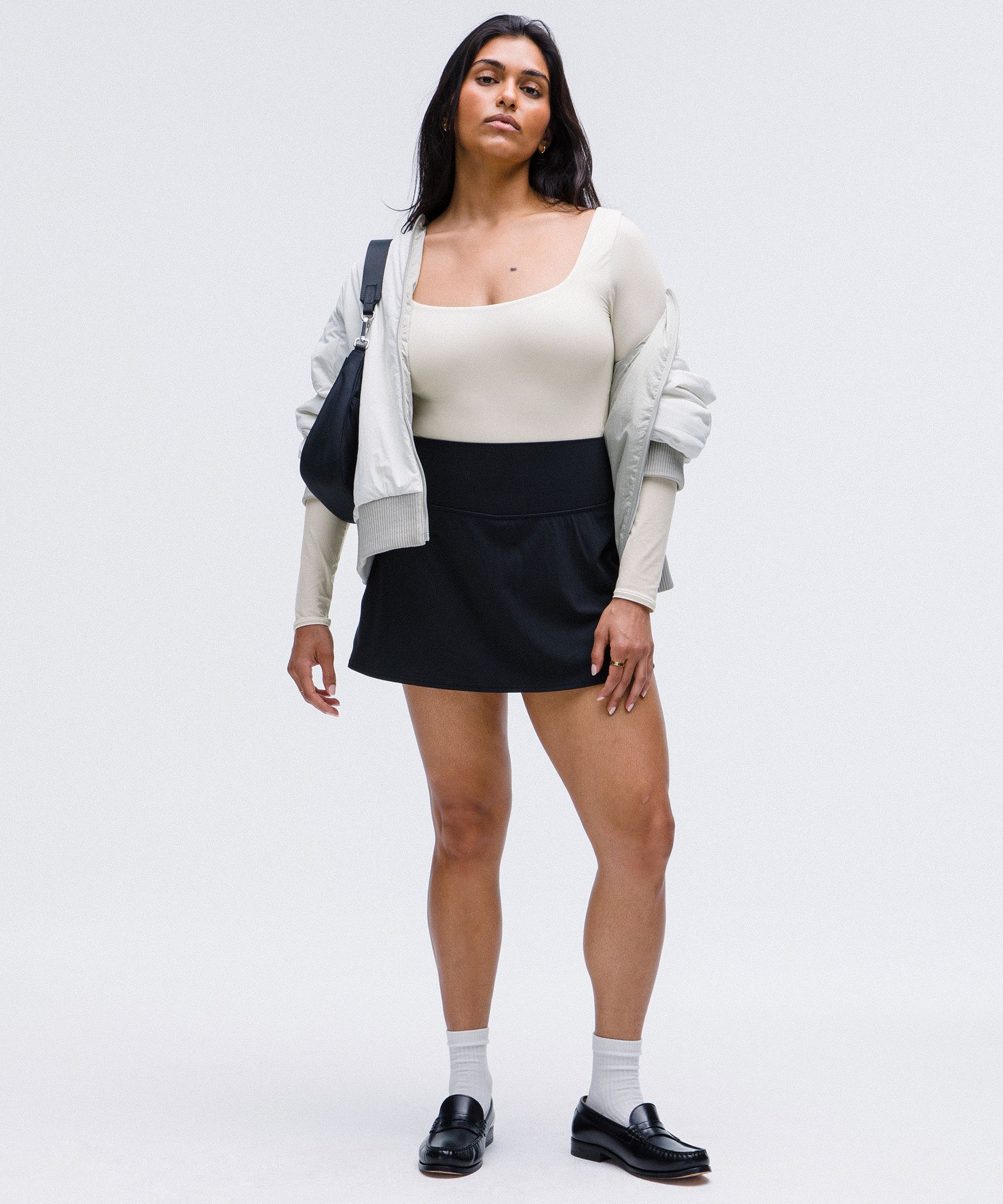 Side seams are curved to gently accentuate your shape